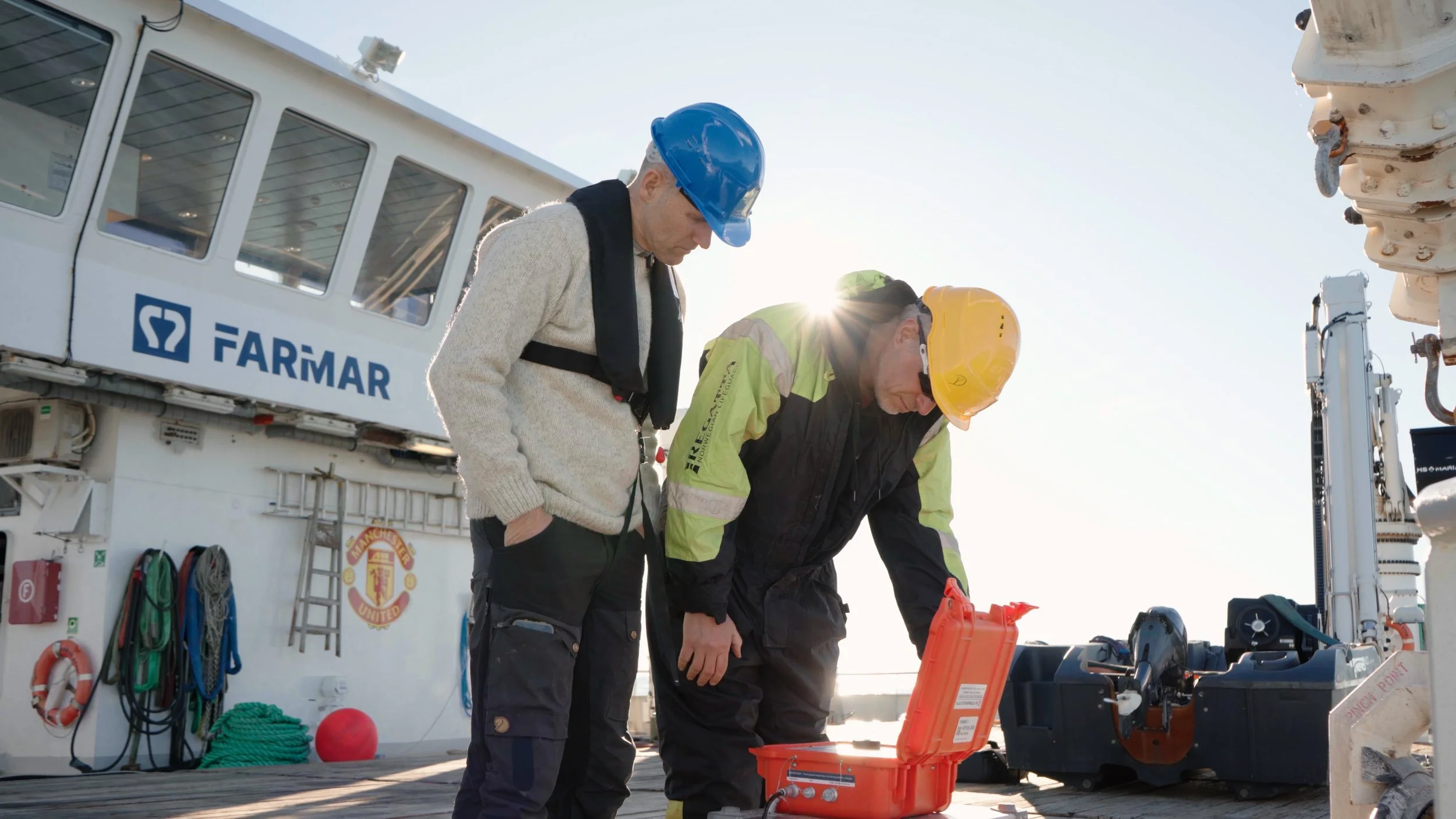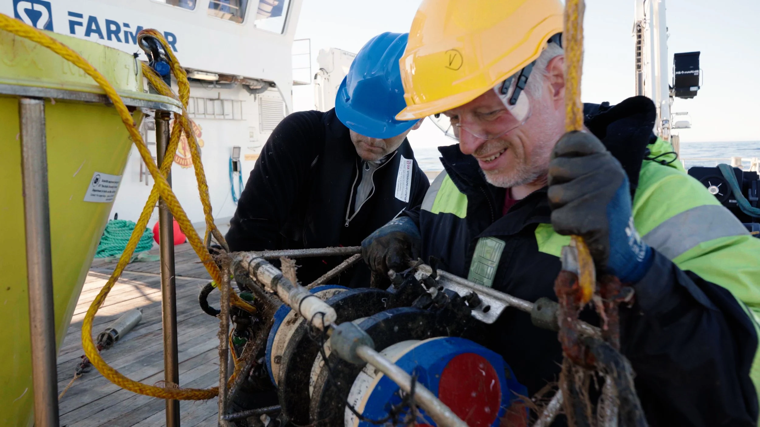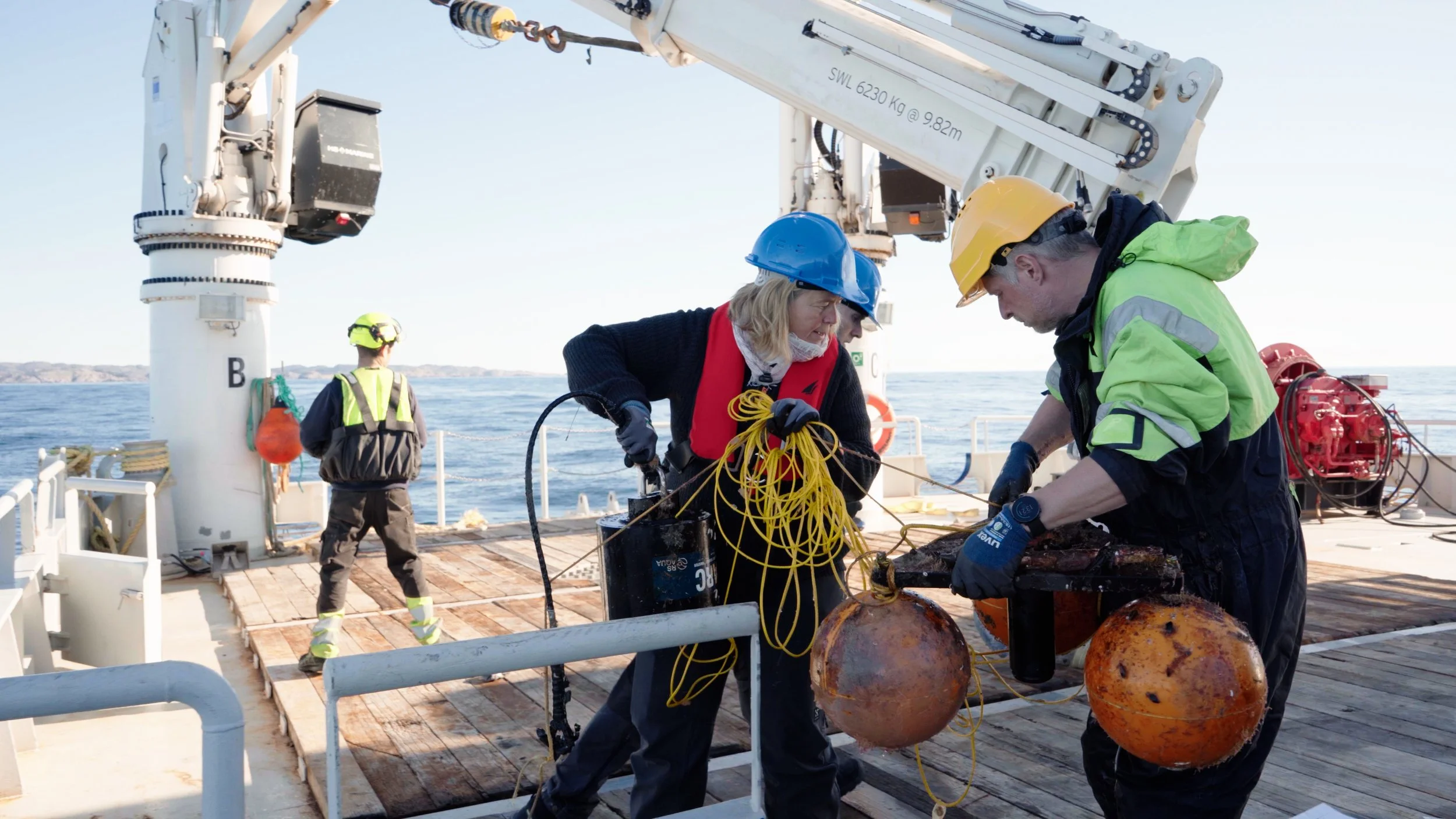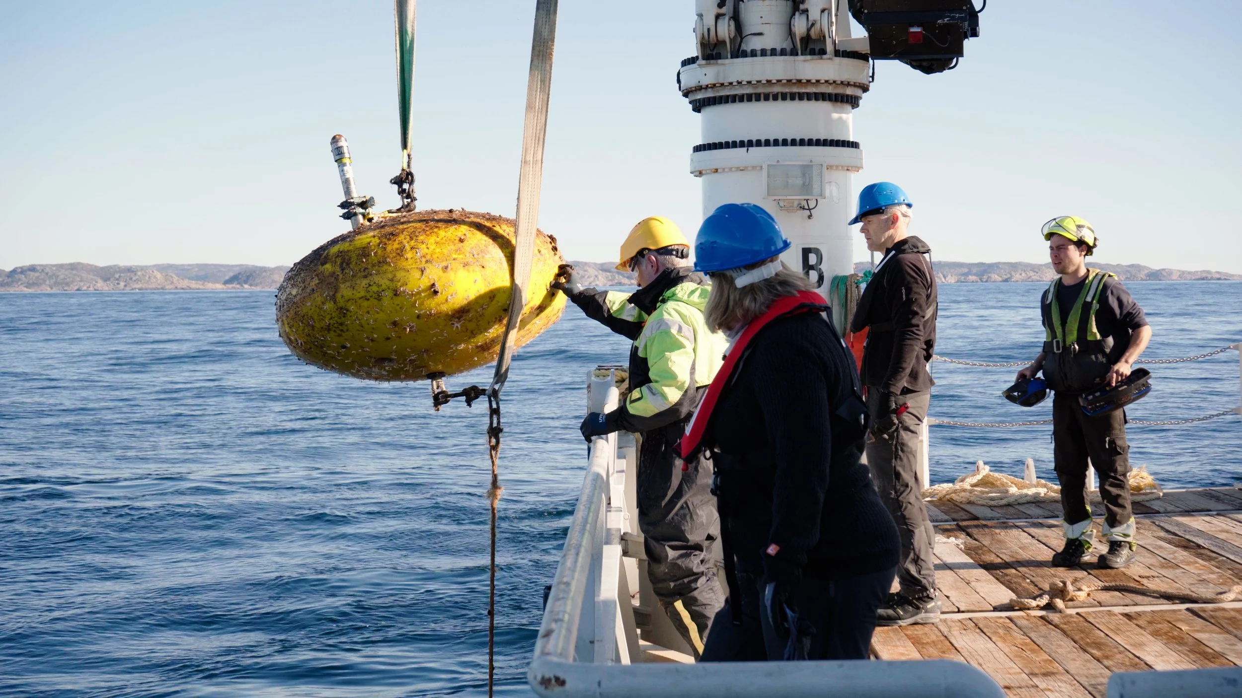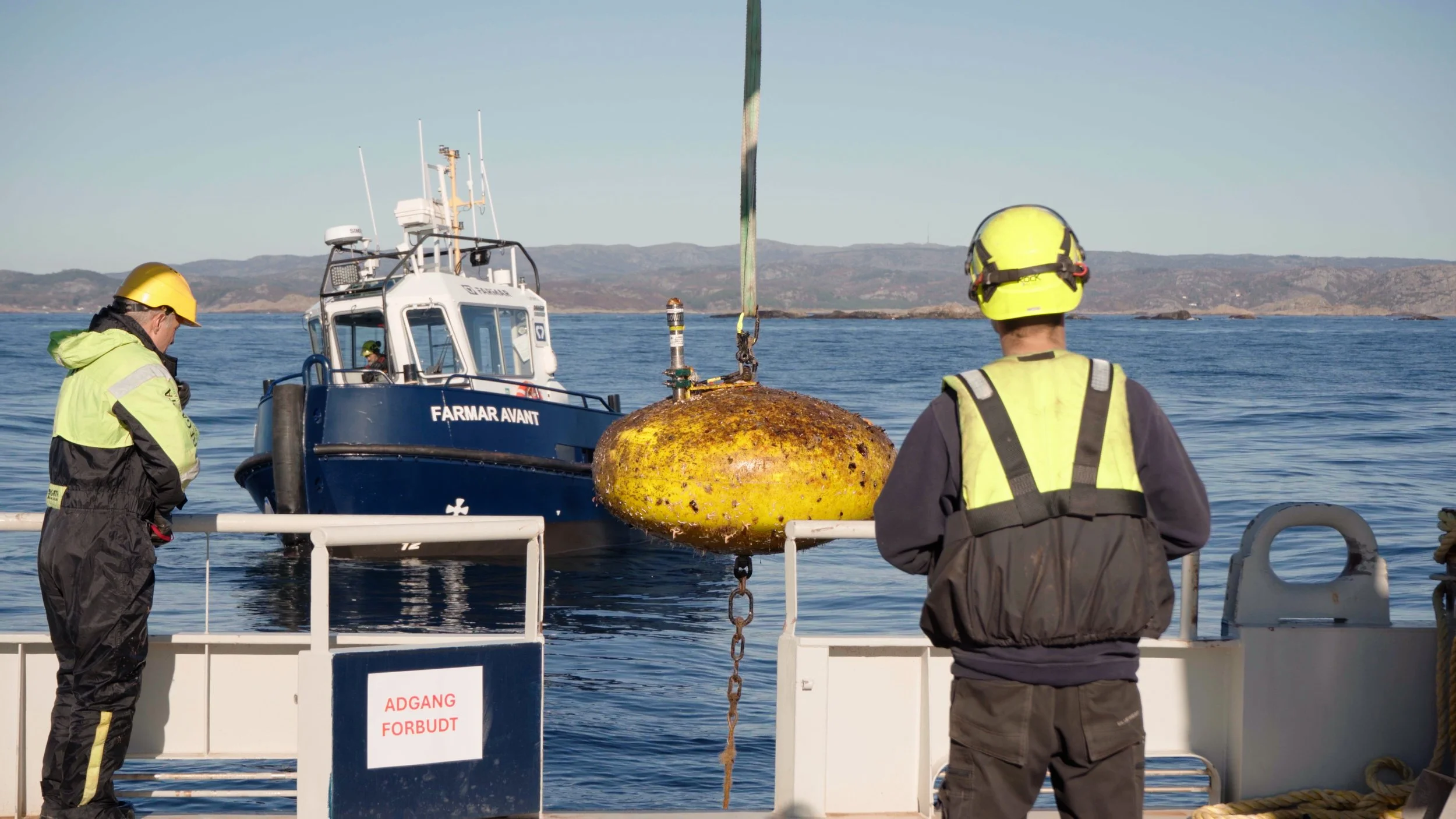 En rolig høstmorgen utenfor Farsund, sammen med Universitetet i Agder, setter vi kursen ut mot Ystesteinen for å hente opp kystobservatoriet. Her ute er det vanligvis værhardt, men i dag er vi heldige. Vannet ligger som et speil i høstsolen, og bare lyden av vinsjen bryter stillheten idet riggen sakte kommer til syne ved siden av båten.