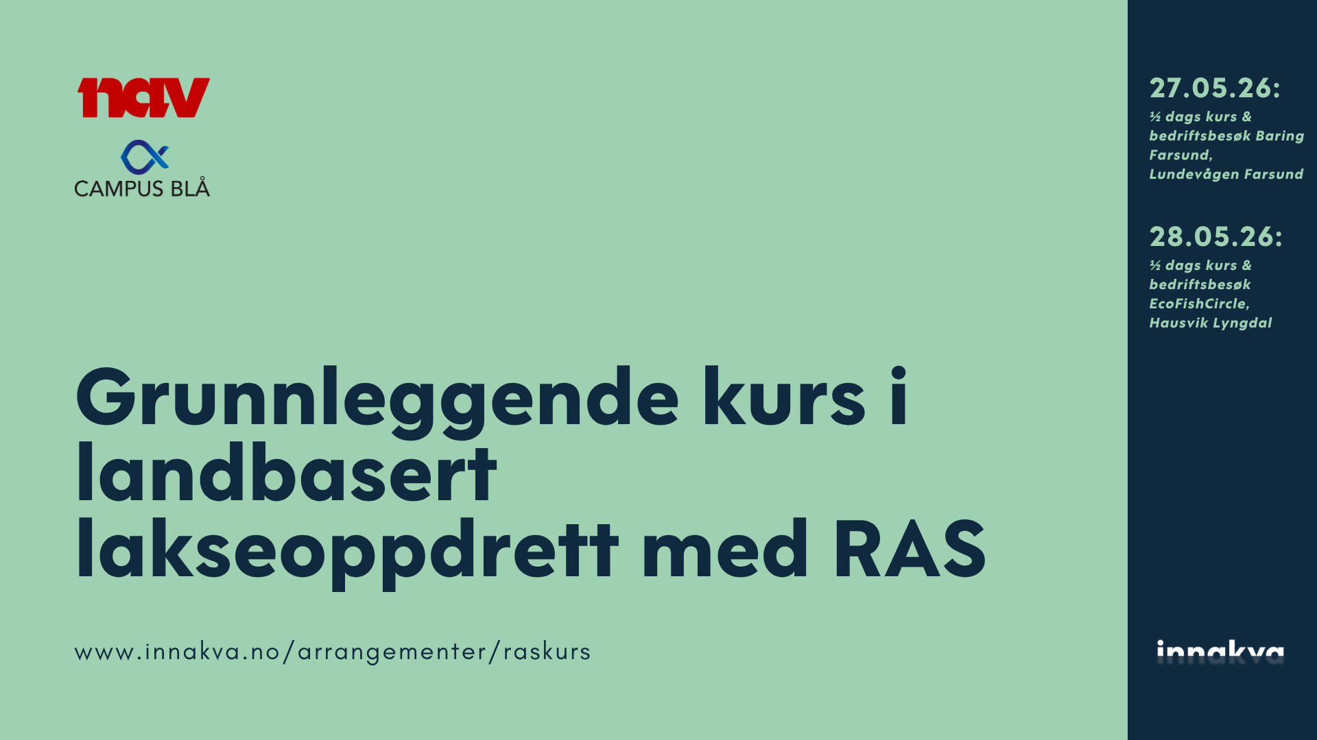 Påmelding: https://campusbla.no/no/kurs/grunnleggende-kurs-i-landbasert-lakseoppdrett-med-ras/