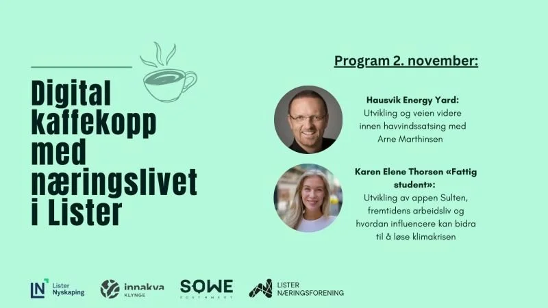 Karen Elene Thorsen “Fattig student” Hun vil i som presentasjon snakke om arbeidet med utviklingen av appen “Sulten”, fremtidens arbeidsliv og hvordan influencere kan bidra til å løse klimakrisen.