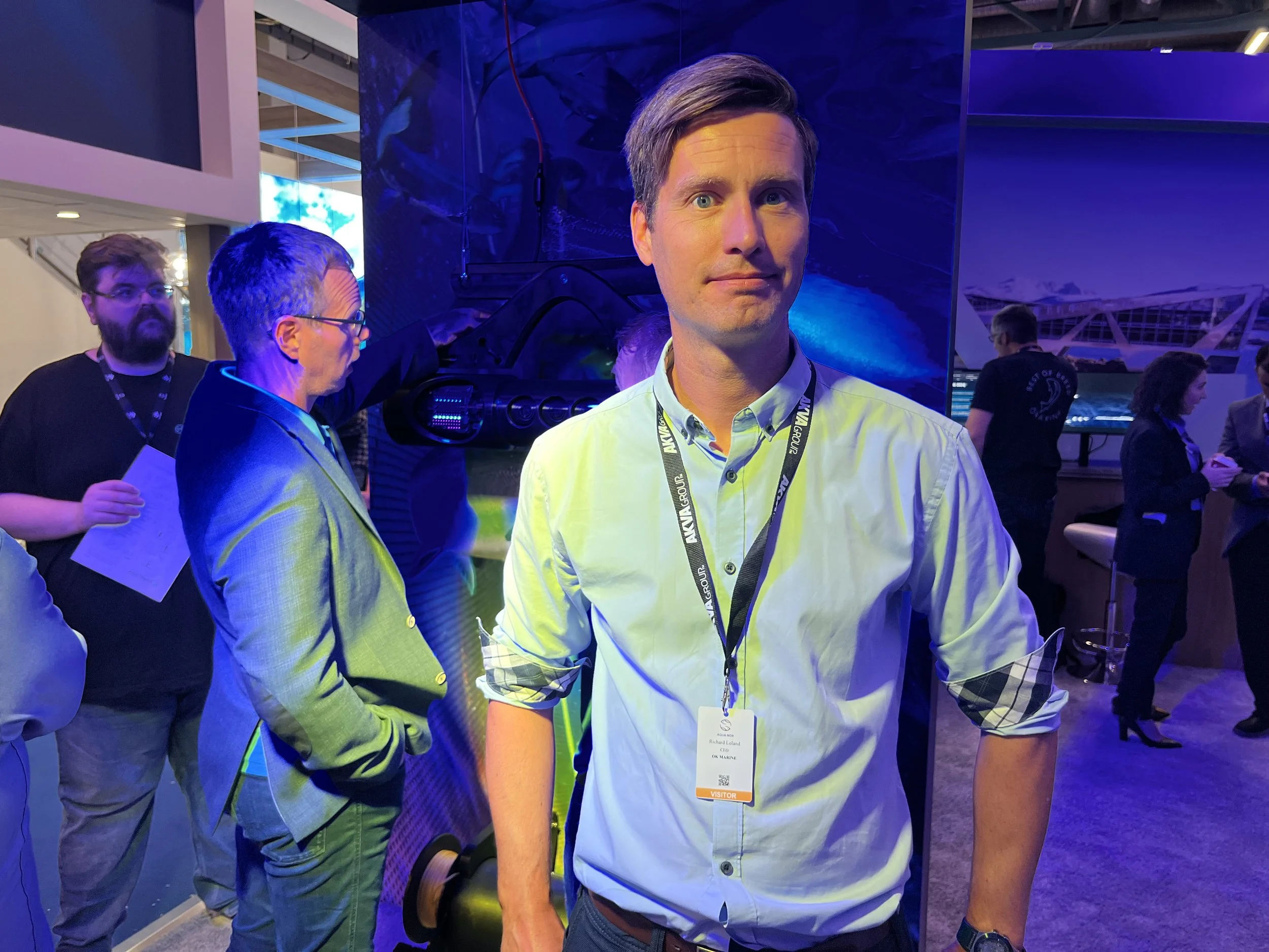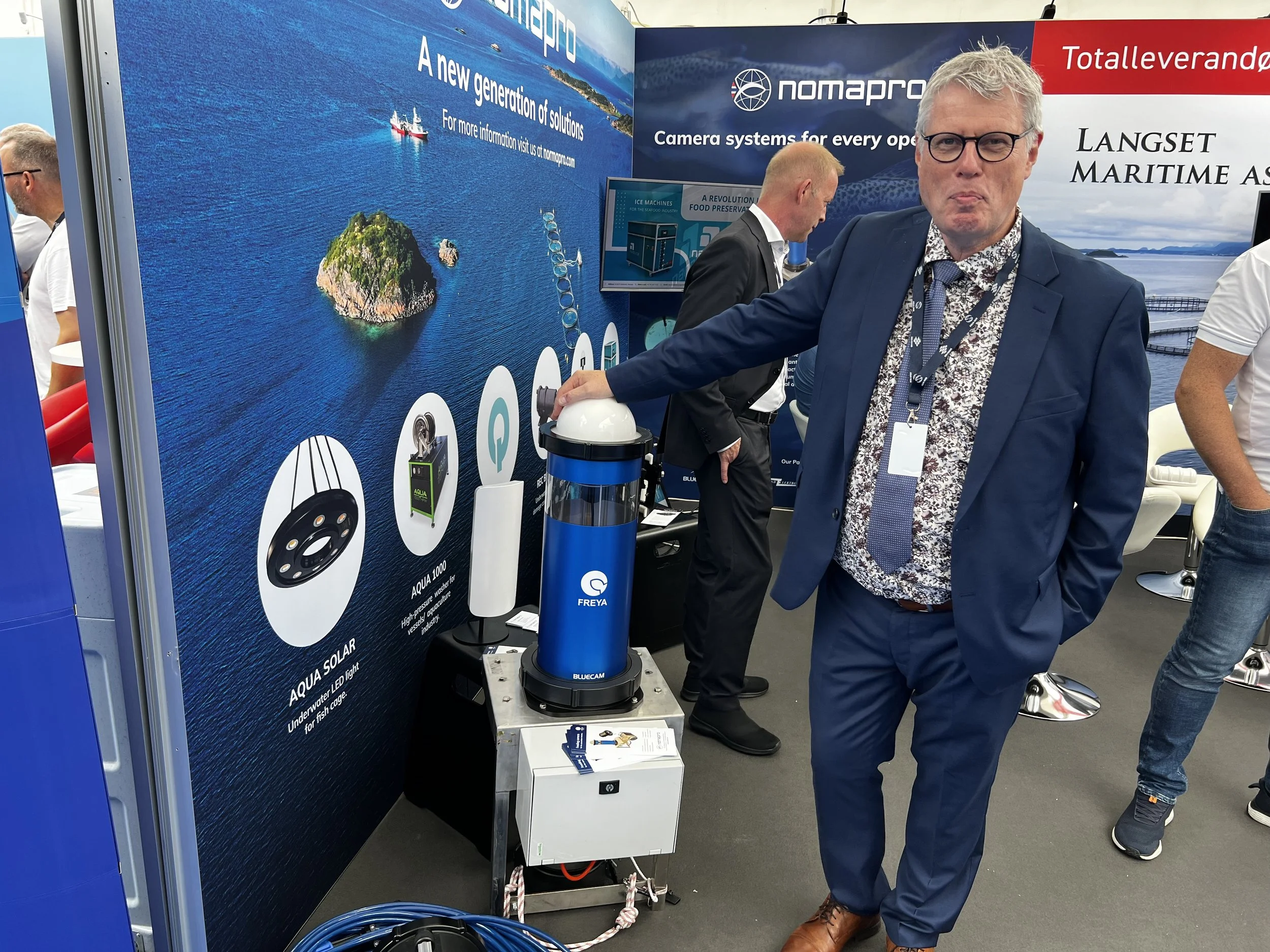 Gründer og produktutvikler Harald Gundersen i Bluecam AS viste stolt frem produktet “Freya” på stand sammen med Nomapro AS.