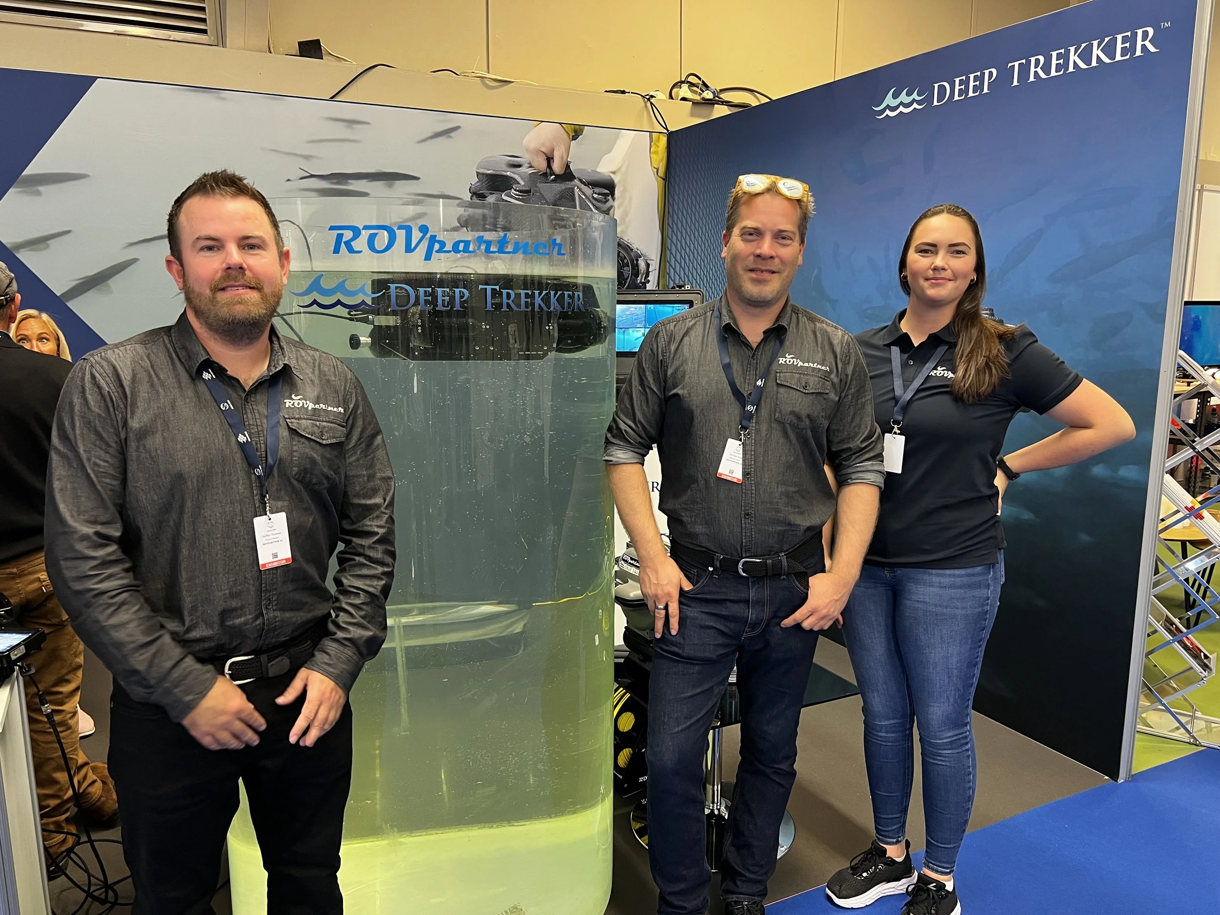 ROVpartner AS hadde sammen med det kanadiske selskapet Deep Trekker en ny-lansering og kunne stolt vise frem deres undervannsdrone i funksjon på messen. Standen var rigget opp med egen tank som muliggjorde å vise funksjoner og bevegelighet live. Steffen Thomsen (t.v) hos ROVpartner kunne opplyse at det var stor interesse for nyheten.