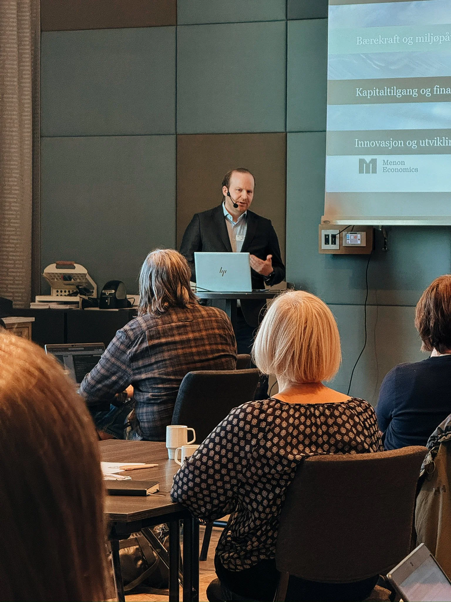 Dagen startet med et innlegg fra Oddbjørn Grønvik i Menon Economics, som presenterte hovedfunnene fra Menon-rapporten: Blått Agder.